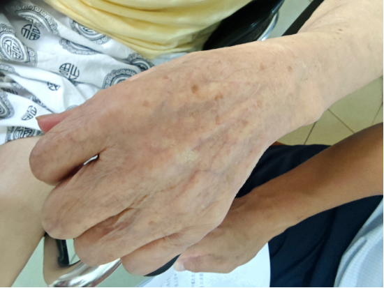 采访过程中,郭老摸着手背的伤疤说:“记得那时候,在河北临清县,由于伤员多,绑带也用的多,那时候河水寒冷刺骨,每天需要不停地在冰冷刺骨的河水里清洗绑带,两只手肿得像包子一样,至今留在左手背上的伤疤就是那时候留下的。”