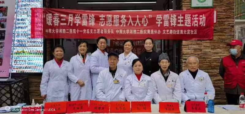3月3日,由湘雅二医院第十一党总支、离退休工作办和南元宫社区共同组织的,以“学雷锋”为主题的义诊活动在南元宫志愿者服务站举行。湘雅二医院离退休志愿者服务队参加活动,为前来寻医问诊的群众提供义诊服务。