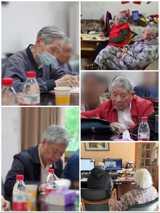 离退休党员们早早地来到了会场,他们坐姿端正,聚精会神地聆听授课。随着讲课老师的深入讲解,老党员们纷纷拿出笔记本,开始认真地做起了笔记。他们时而低头思索,时而奋笔疾书,时而举起手机拍照记录,生怕错过任何一个重要知识点。几位年事已高、行动不便的老同志则在家中以进行线上学习。