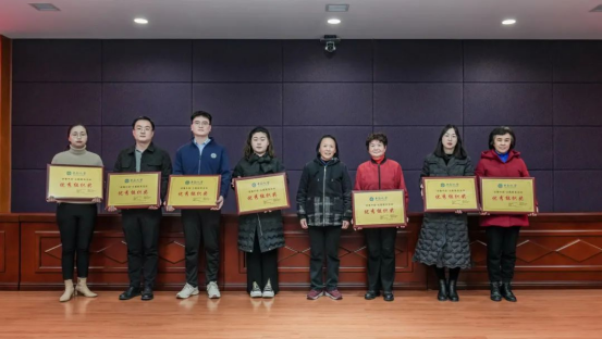 校党委副书记、校关工委主任黄健陵,校关工委常务副主任徐建军,学校办公室主任闫红杰,离退休工作处处长向英明,校关工委副主任唐建华、李满春、胡凯、张国强,共同为获奖单位和个人颁发了证书和奖牌。
