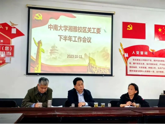 校区关工委常务副主任胡凯就近两年工作进行总结,对下半年工作作出部署。她从三方面对2021年下半年至今年9月校区关工委工作进行了回顾。一是突出抓好重点工作。认真组织学习党的十九届六中全会公报、党的二十大报告,开展了形式多样、内容丰富的学习活动。深入学习贯彻习近平总书记对做好关心下一代工作的重要指示以及中办、国办与教育部党组关于加强新时代关心下一代工作的重要文件,组织了专题学习研讨,突出了提高思想认识、加强队伍建设。精心组织参与教育部“读懂中国”主题教育活动,取得好成绩。其中2个作品获教育部关工委最佳奖,3个作品获省教育厅关工委二等奖。湘雅三医院承办了湖南省高校“读懂中国”主题教育活动研讨会。湘雅三医院关工委工作先后受到省教育厅关工委、教育部离退休干部局领导的高度好评。湘雅医学院关工委在学校法律知识竞赛中取得优异成绩。二是精心做好特色工作。打造了助力大学生心理健康教育、二级关工委发挥优势参与社区教育与发挥老教授育人作用等特色工作,为学校关工委网络工作品牌和参与社区教育工作品牌提供了丰富、鲜活的素材,有三个创新案例在今年评选中获学校最佳和优秀奖。三是做好常规工作。胡凯常务副主任解读了学校关工委下半年工作任务,结合校区工作实际进行了布置,重点就扎实做好评先工作解读学校文件精神与要点,提出具体要求。