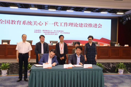 教育部离退休干部局党委书记、局长,关工委常务副主任于虹主持会议,上海市教卫工作党委副书记张艳萍致辞,教育部关工委副主任兼秘书长张文忠宣读《关于公布教育部关工委宣传与研究中心主要职责和机构组成的通知》。会上,教育部关工委还为宣传与研究中心首席专家颁发聘书、为《心系下一代》理论版首期作者代表赠刊并和中国教育科学研究院签署战略合作意向备忘录。