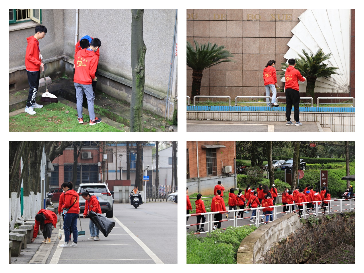 “兰叶春葳蕤,桂华秋皎洁”春天的暖阳洒落在校园的每个角落,初露的晴川照耀着一群群身着红色队服的小红帽们,是那么温暖和谐。他们分工明确、井然有序、团队合作,他们在一片欢声笑语中忙碌在老同志活动区。他们本着“不放过一个角落”的精神,沿途拾取垃圾杂物,在一次次弯腰中体验雷锋的不易,在一滴滴汗水中感悟雷锋精神的真谛。在清扫过程中,有的人负责打扫路面,有的人负责收集垃圾,有的人负责查缺补漏。在他们的紧密配合下,给老同志活动区带来了崭新的气象。